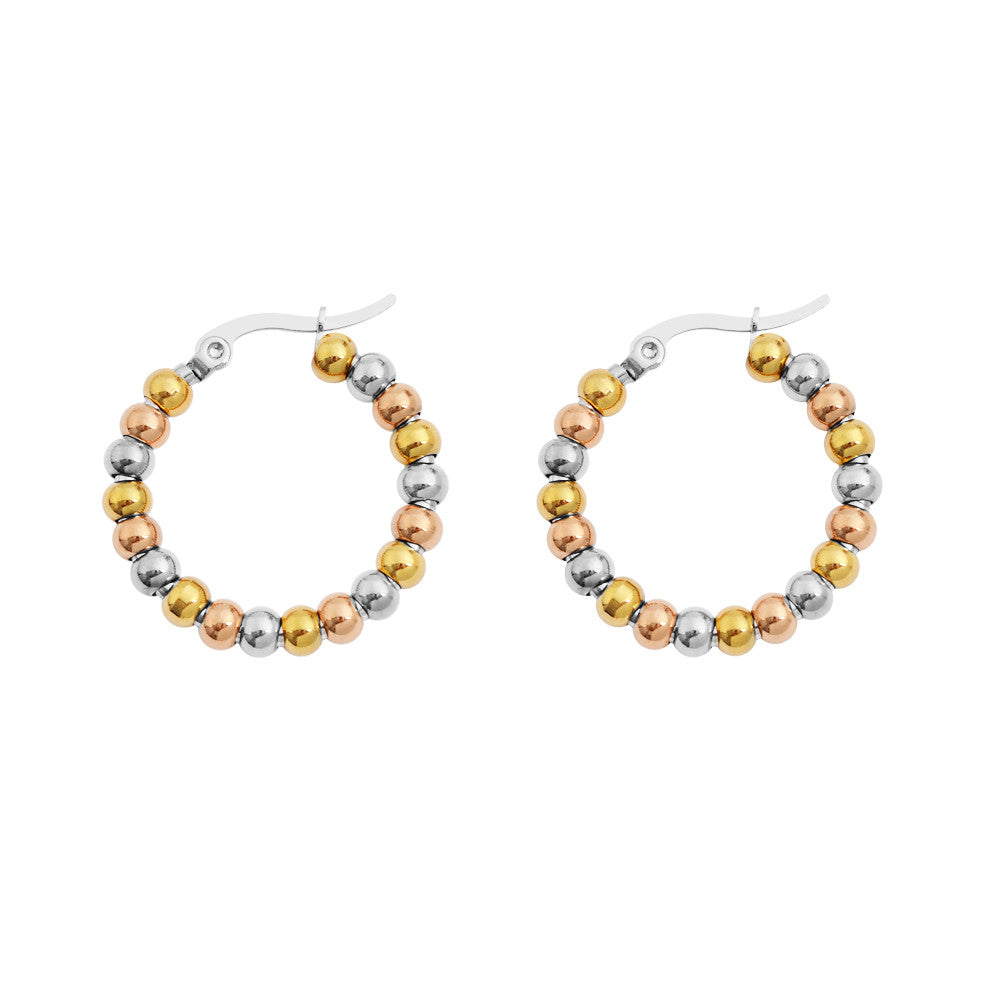 Hermosa argolla en 3 tonos: dorado, plateado y oro rosado. En stainless steel y baño en oro.